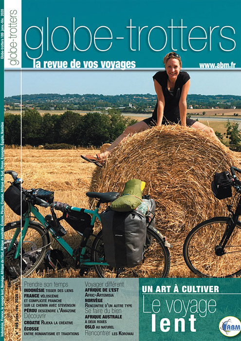 | PO5 INDONÉSIE Il était une fois…notre papi indonésien : Marion Staderoli P08 LE VOYAGE LENT Adepte du voyage lent : Hélène Salaün P10 FRANCE La Véloscénie : Claire Pawliez P14 Le chemin de Stevenson : Francis Bourguer P18 NORVÈGE Rencontre d’un autre type : Jonathan Doval P22 Oslo au naturel : Mickaël Meloni P24 AFRIQUE DE L’EST Afric-Artemisia : Maëlle Poncet et Pierrick Crozier P28 AFRIQUE AUSTRALE L’Afrique à deux roues : Karine Prempain P32 ÉCOSSE L’Écosse, entre romantisme et traditions : Sylvie Hupin-Genty P34 INDE Le peuple des mithuns : Isaure de Saint Pierre P36 INDONÉSIE Les Korowai et la maison dans les arbres : Daniel Stoecklin P38 PÉROU En descendant l’Amazone : Philippe Gouyou Beauchamps P42 LES VILLES QUI BOUGENT Croatie, Rijeka : Tyn Braun P44 PORTFOLIO Afrique du Sud, Sultanat d’Oman, Delphine Mathy et Clément Carel L’ASSOCIATION P50 Écrits et chuchotements P51 Tribulations culturelles P52 Infos : Vitoria-Gasteiz P54 Le coin des bourlingueurs Sumatra, Égypte, Namibie, Pérou P59 Les sites Internet des adhérents autour du monde, À vos plumes P61 Voyageurs au long cours P62 Les anciens Globe-trotters P64 ABM en région P70 La vie de l’association P72 Agenda ABM Île-de-France P74 Petites annonces, rendez-vous voyage |