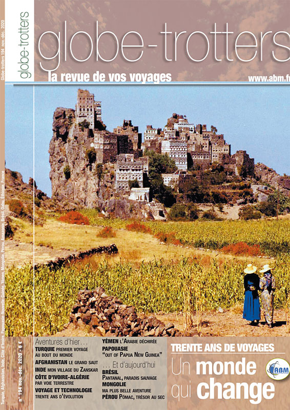 PO5 TURQUIE Mon premier voyage au bout du monde… en Turquie : Jean Revertegat P10 AFGHANISTAN Le grand saut : Pierre-Yves Quémener P14 PODIUM CONCOURS PHOTOS Le tiercé du 32e Festival des Globe-trotters P20 INDE Pibiting, mon village au Zanskar : Martine Durand P24 CÔTE D’IVOIRE Abidjan-Alger par voie terrestre : Isabelle et Michel Noirot P27 PAPOUASIE-NOUVELLE-GUINÉE Out of Papua New Guinea : Jean-François et Gabrielle Burgnard P32 VOYAGE ET TECHNOLOGIE Trente ans de voyages et d’évolution de la technologie : Gabriel Gouband P35 YÉMEN Yémen, l’Arabie déchirée : Daniel Stoecklin P39 MONGOLIE Mongolie, ma plus belle aventure : Lucas Lepage P44 PÉROU Pómac, un trésor au sec : Mickaël Meloni P46 AMAZONIE Interdit d’interdire, à partir de mai 1968 tout devient possible : Jean-Claude Bossard P48 BRÉSIL Le Pantanal, paradis sauvage : Micheline Ney P52 PORTFOLIO Les autres gagnants du concours photo P58 ÉCRITS ET CHUCHOTEMENTS P60 VAGABONDAGE HAWAII À la découverte de la face cachée d’Oahu : Christine Aigle-Foley P63 COIN DES BOURLINGUEURS Éthiopie, sur les traces d’Arthur Rimbaud : Évelyne et Alain Bouchereau P66 DOUCE FRANCE La vie de château en Bourgogne : Tyn Braun P69 TRIBULATIONS CULTURELLES P70 L’ASSOCIATION Les anciens Globe-trotters P72 ABM en région P73 La vie de l’association P74 Les sites Internet des adhérents autour du monde À vos plumes |