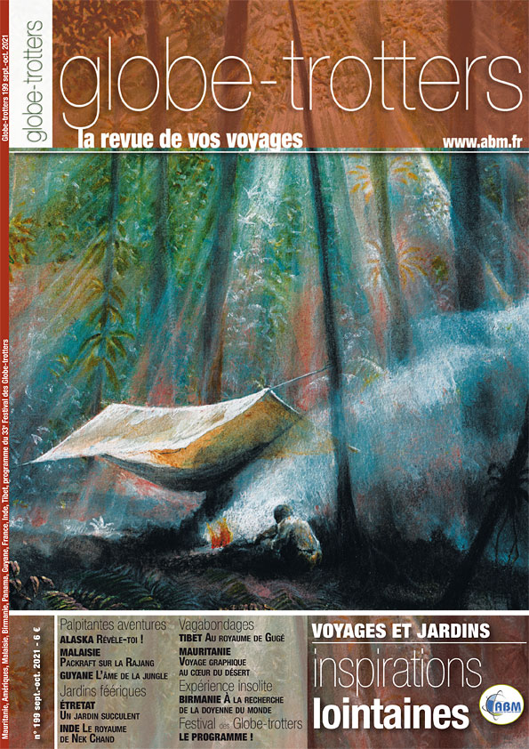 PO5 MAURITANIE Carnet de voyage en Mauritanie : Jérémie Bonamant-Téboul P10 AMÉRIQUES Relève-toi, révèle-toi : Sophie Planque P14 MALAISIE Packraft sur la Rajang : David Scholl P17 BIRMANIE À la recherche de la doyenne du monde : Pejan P22 PANAMA Retour à la Guaira : Mathieu des Longchamps P24 GUYANE Chercheur d’âmes : Julien Belin P27 FESTIVAL DES GLOBE-TROTTERS programme de la 33e édition et bulletin de réservation JARDINS DU MONDE P36 Tour du monde des plantes les plus dangereuses de la planète : Katia Astafieff P38 FRANCE Le jardin agronomique tropical : Nicole Gay P40 INDE Le royaume de Nek Chand : Marie-Christine Hattier P43 FRANCE Étretat, un jardin succulent qui sent l’eau de mer : Marie Redor P46 Jardins “bien-être”, éveil des sens : Marie-Claude Burge P50 PORTFOLIO Mauritanie : Loïc Terrier et Jonathan Lux P56 ÉCRITS ET CHUCHOTEMENTS P57 TRIBULATIONS CULTURELLES P58 DOUCE FRANCE Les trésors des Combrailles : Rozenn Jéhanno COIN DES BOURLINGUEURS P60 Tibet, au royaume de Gugé : Daniel Stoecklin P64 La via Garona, l’autre chemin de Compostelle : Chantal Martignon P68 VOYAGEURS AU LONG COURS P70 L’ASSOCIATION P70 Les anciens Globe-trotters P72 ABM en région P73 La vie de l’association P74 Les sites Internet des adhérents autour du monde À vos plumes |