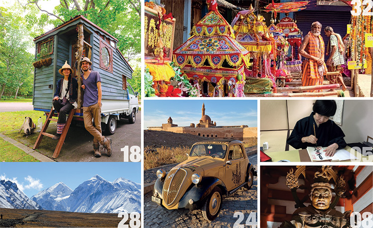 L'ÂME DU JAPON PO5 Shikoku, le JAPON autrement : Dany et Serge Morin P08 Japonaiseries : Jean-Marc Leclerc P12 Les éclairs du mont Fuji : Jean-Marc Leclerc P14 Nosoko, nowhere, no escape : Alain Kaufmann P16 Ishigaki, Tokyo pratique : Alain Kaufmann RENCONTRE INSPIRANTE P18 Ma cabane mobile au JAPON Interview de Pierre Westelynck : Philippe Masse P22 PORTFOLIO JAPON : Pascale Martin SUR LES TRACES DE… P24 IRAN Route Nicolas Bouvier, 8000 km au rythme d'une petite souris : Bernard Naef VAGABONDAGE P28 NÉPAL - DOLPO Plongée dans le “pays caché” : Cécile Mailhos P32 INDE Odysée en Odisha : Pierre-Yves Quémener P32 ALBANIE Trois jours à Tirana : Ronald Bosmans VOYAGEURS DU PASSÉ P35 Portrait de : ALEXANDRA DAVID-NEEL par Guy Colombet P43 TRIBULATIONS CULTURELLES L’ASSOCIATION P44 À vos plumes ! P45 Agenda ABM |